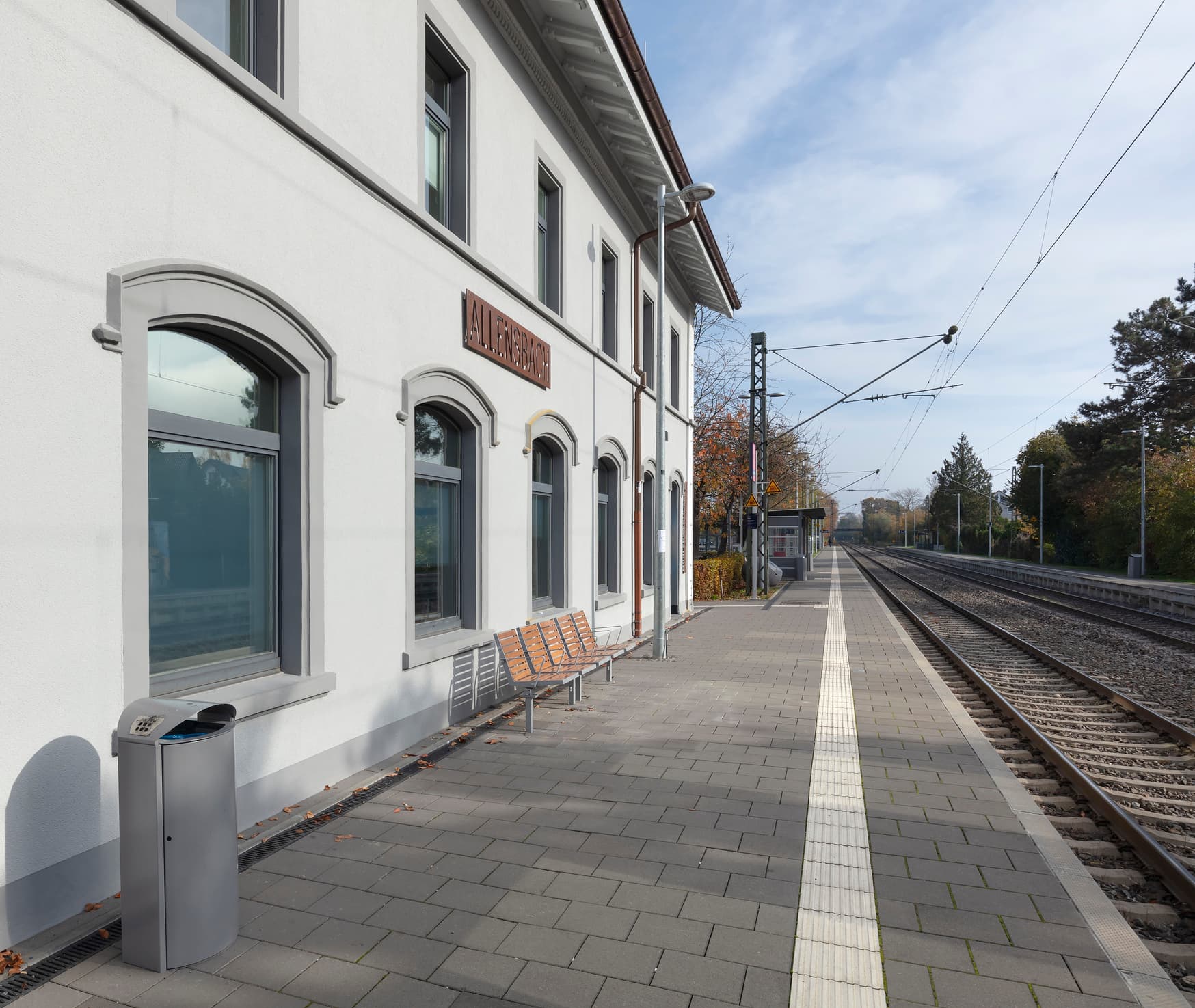 Neue Bänke und ein modernisiertes Bahnhofsgebäude laden zum Verweilen am Bahnhof Allensbach ein.