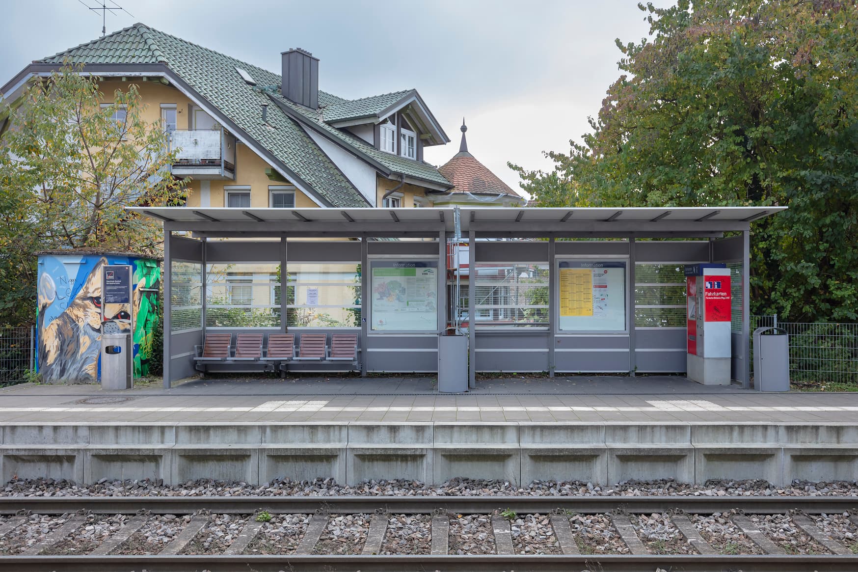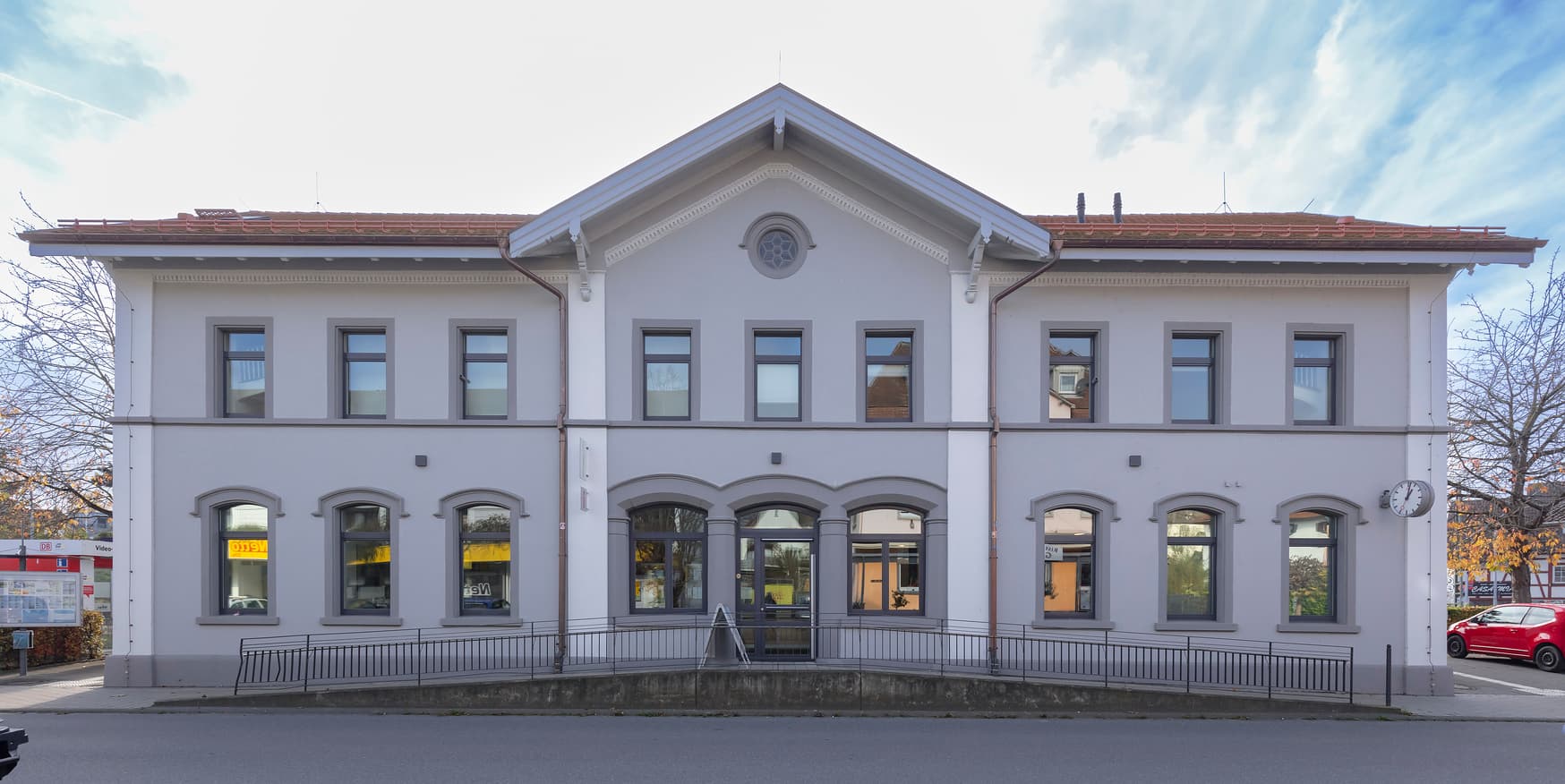 Link zu diesem Abschnitt kopierenDas sehr gut gepflegte Bahnhofsgebäude fügt sich optimal in die erneuerte Station ein.
