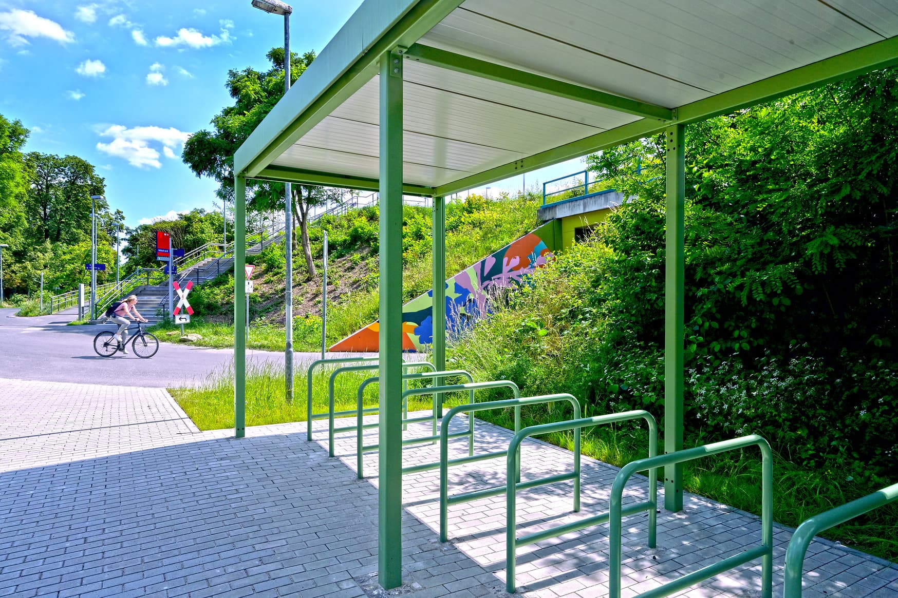 Link zu diesem Abschnitt kopierenGrünes Delitzsch bereits beim Ankommen: Für ein ganzheitliches Erscheinungsbild wurde die Bike&Ride-Anlage aufgewertet und in einem frischen Grünton gestrichen.
