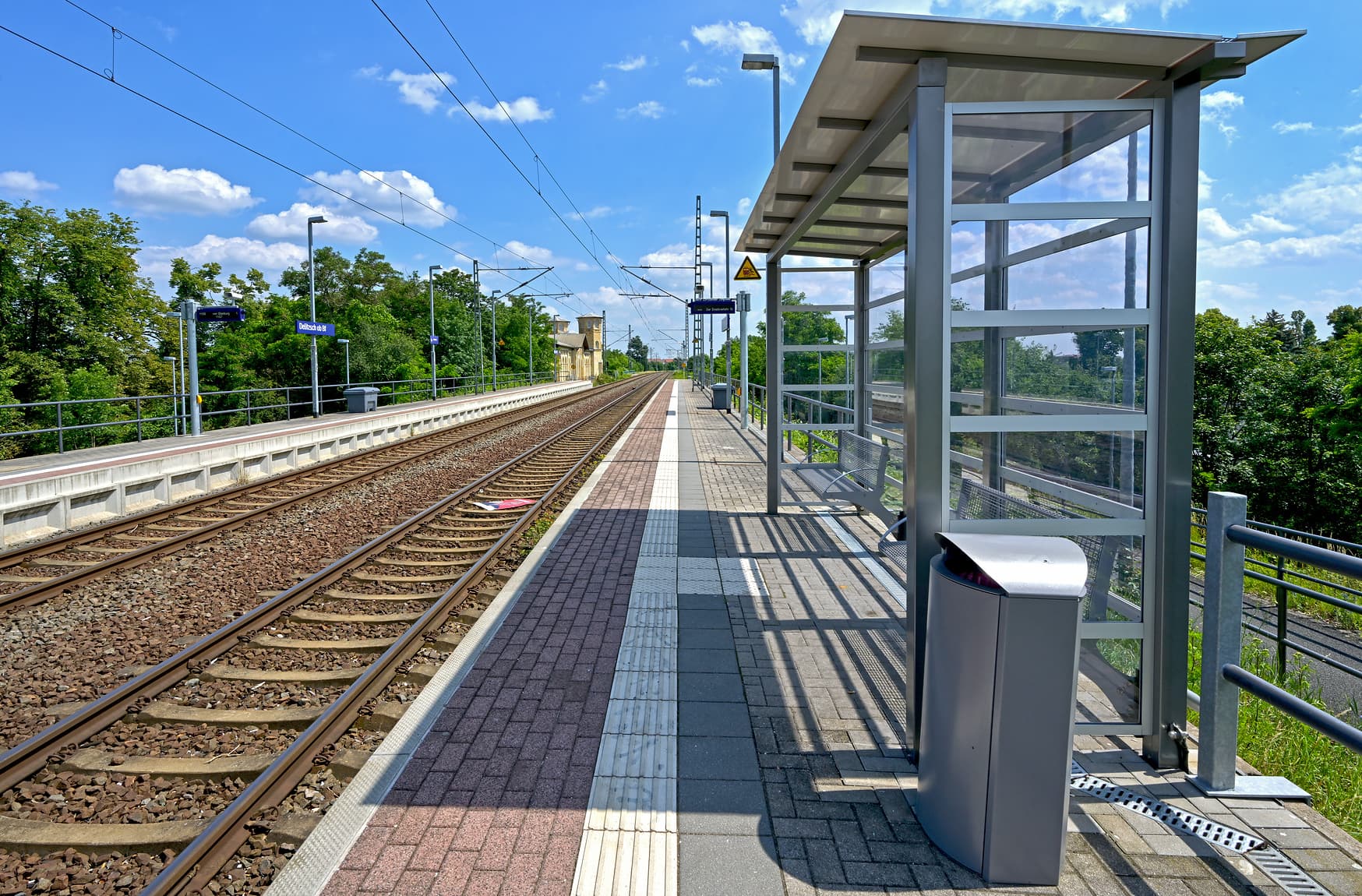 Link zu diesem Abschnitt kopierenDie Reisenden fühlen sich auf den aufgewerteten Bahnsteigen deutlich wohler. Dazu tragen modernisierte, transparente Wetterschutzhäuschen mit neuen Sitzbänken bei. Auch wurden alle Vitrinen und die Wegeleitung erneuert sowie die Reisendeninformation durch die Installation von dynamischen Schriftanzeigern am Bahnsteig verbessert.