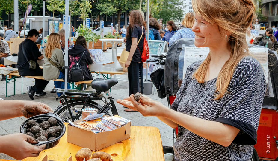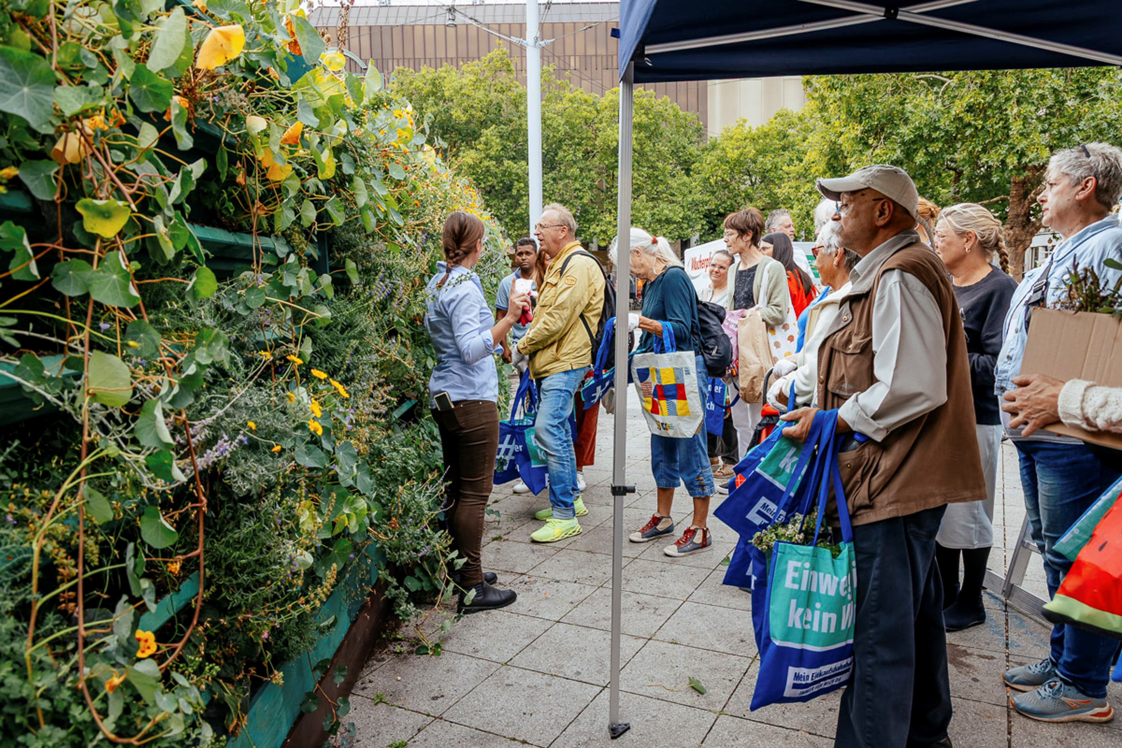 Link zu diesem Abschnitt kopierenZum Abschluss des Bahnhofsgartens werden Pflanzen an die Besucher:innen verschenkt – ein nachhaltiges und grünes Andenken. Sie haben die Möglichkeit, verschiedene Kräuter, Blumen oder kleine Setzlinge mit nach Hause zu nehmen.