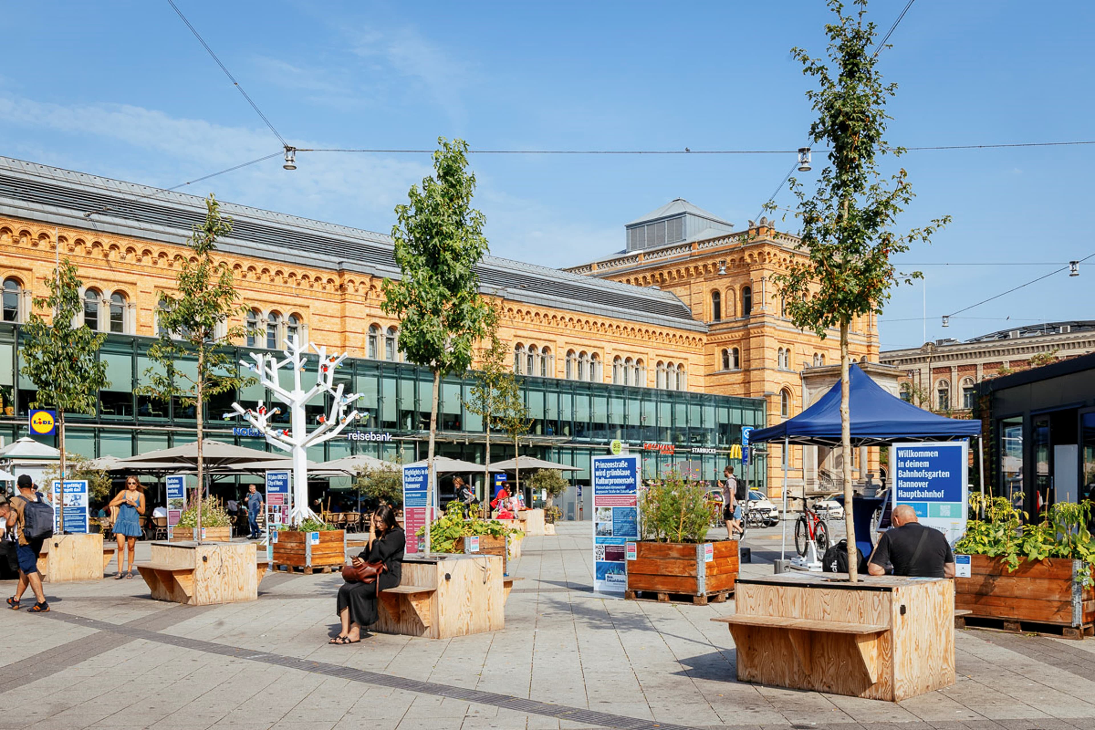 Sitzen, quatschen, mitmachen: Auch in diesem Jahr wird der Vorplatz des Hauptbahnhofs Hannover wieder zur grünen Wohlfühloase mitten in der Stadt.