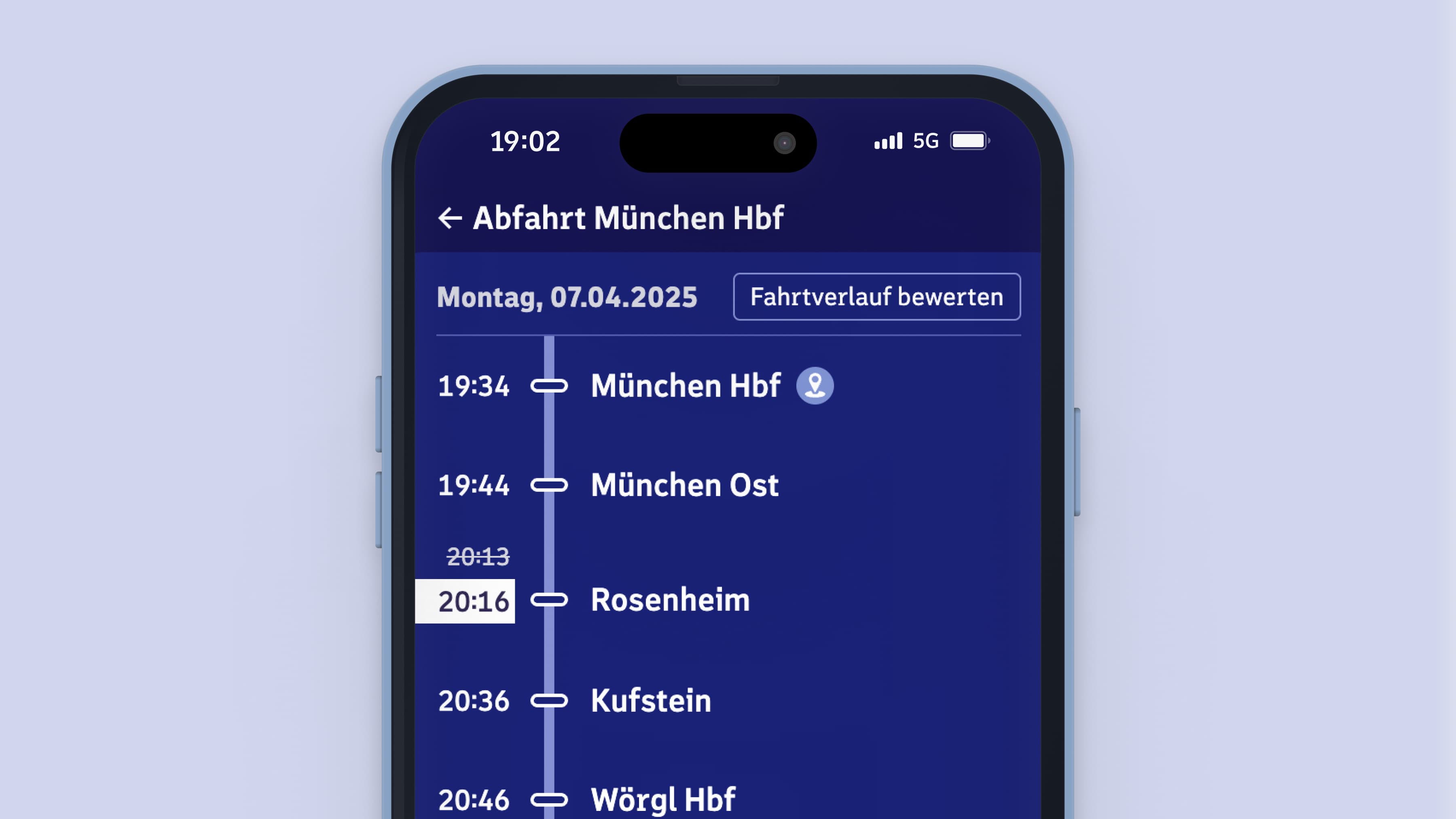 Zu jeder Fahrt können Sie nun direkt von der Abfahrtstafel auf bahnhof.de den kompletten Fahrtverlauf aufrufen – klar strukturiert und barrierefrei zugänglich.