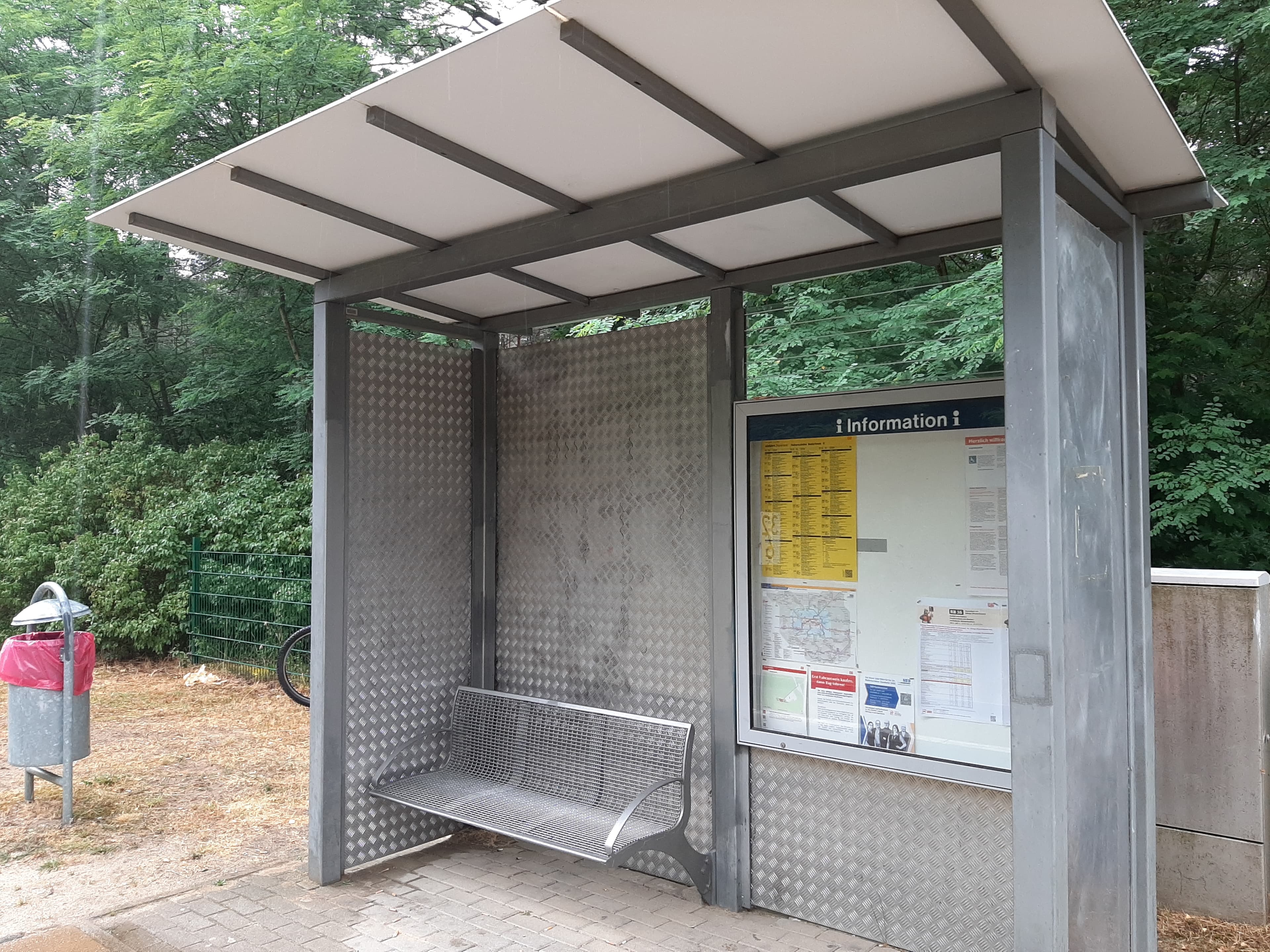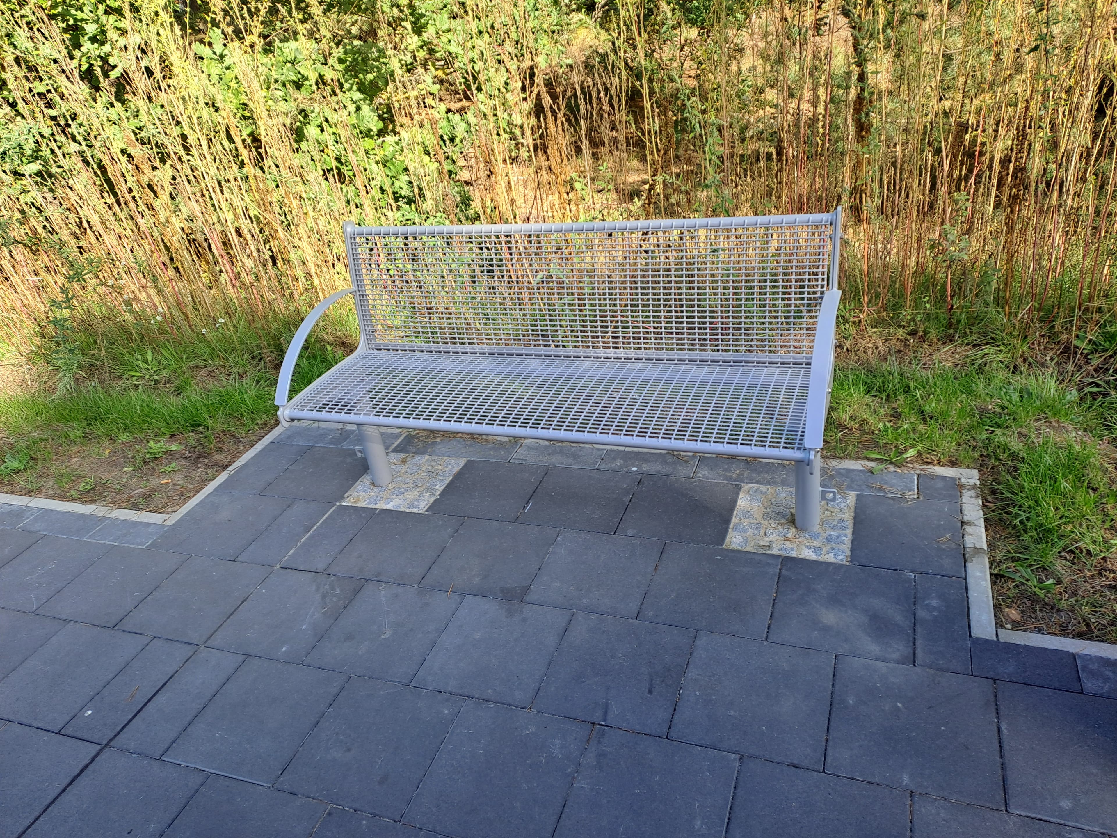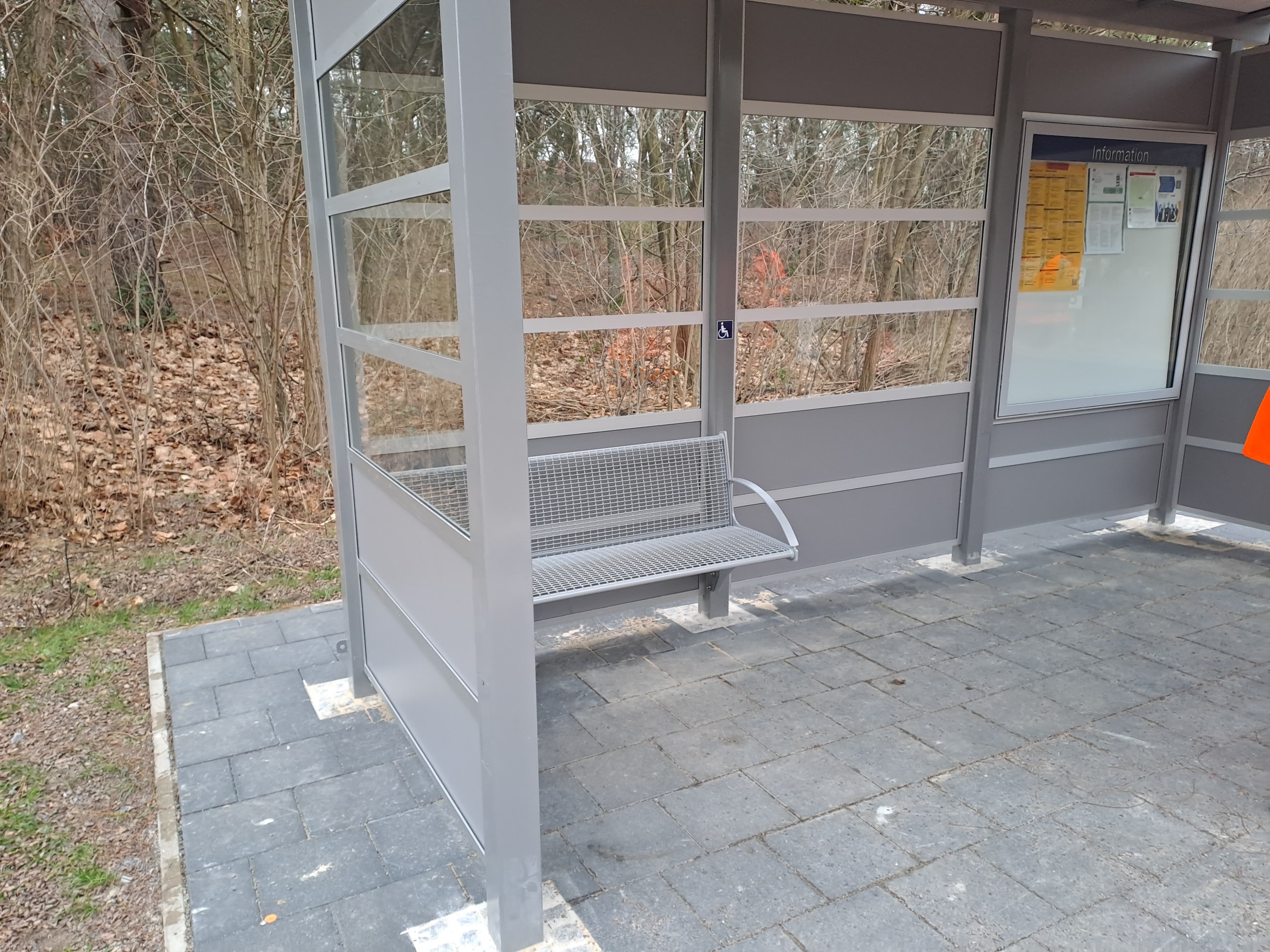 Link zu diesem Abschnitt kopierenDie zwei neuen Sitzbänke am Bahnhof Hubertushöhe passen sich ins moderne Ambiente des Bahnhofs ein und geben ein hochwertiges und einladendes Bild ab. Der Untergrund wurde befestigt und macht die auf dem Bahnsteig befindliche Sitzbank besser zugänglich. Auch die Bank im erneuerten Wetterschutzhaus ist jetzt auf einem modernen Stand.