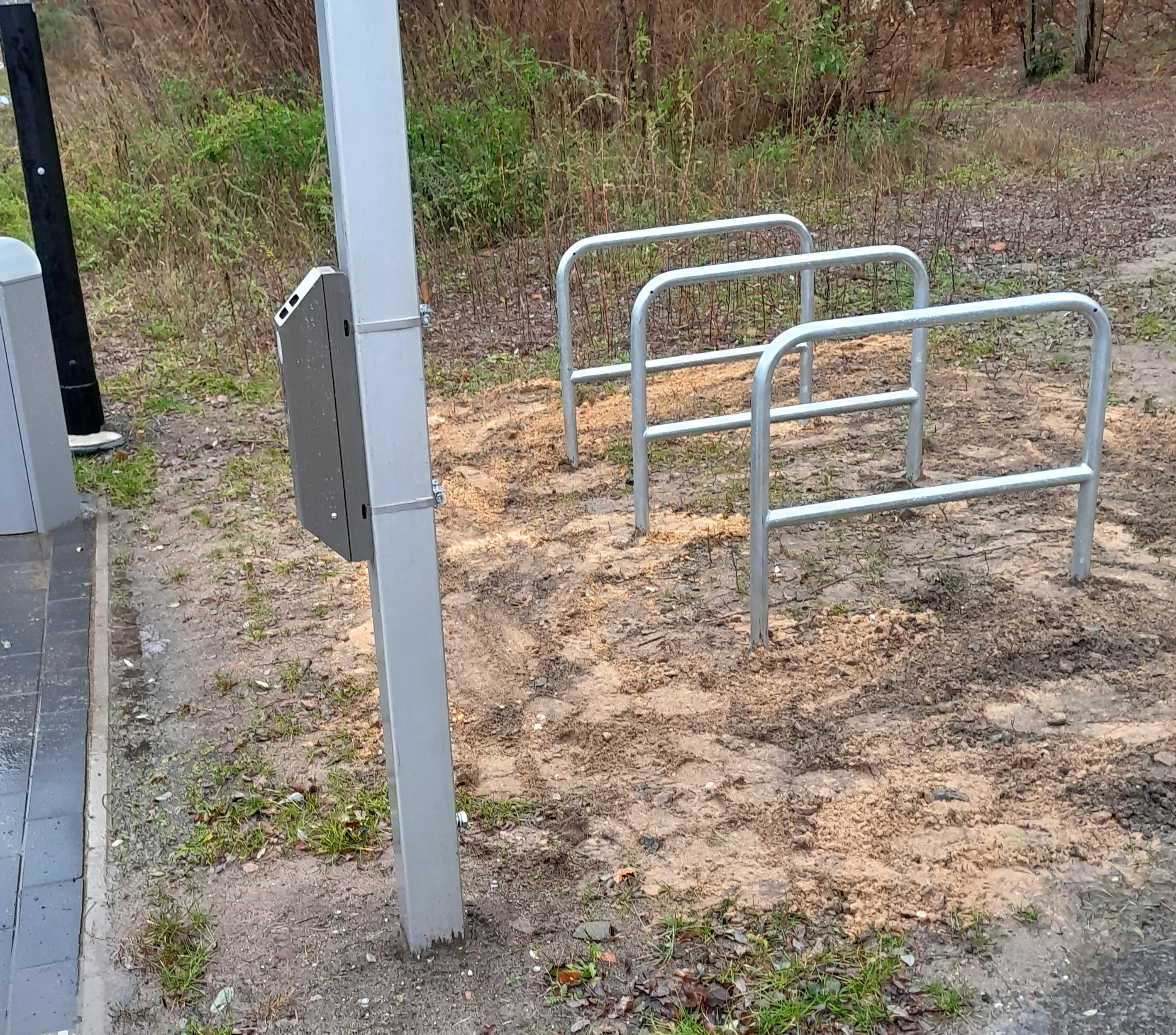 Link zu diesem Abschnitt kopierenKein Anschließen am Zaun mehr nötig: an den neuen Fahrradbügeln stehen die Fahrräder von Pendlern und Reisenden nun den ganzen Tag sicher. So wird die Anfahrt mit dem Fahrrad attraktiver und das Bahnhofsumfeld wirkt aufgeräumter.