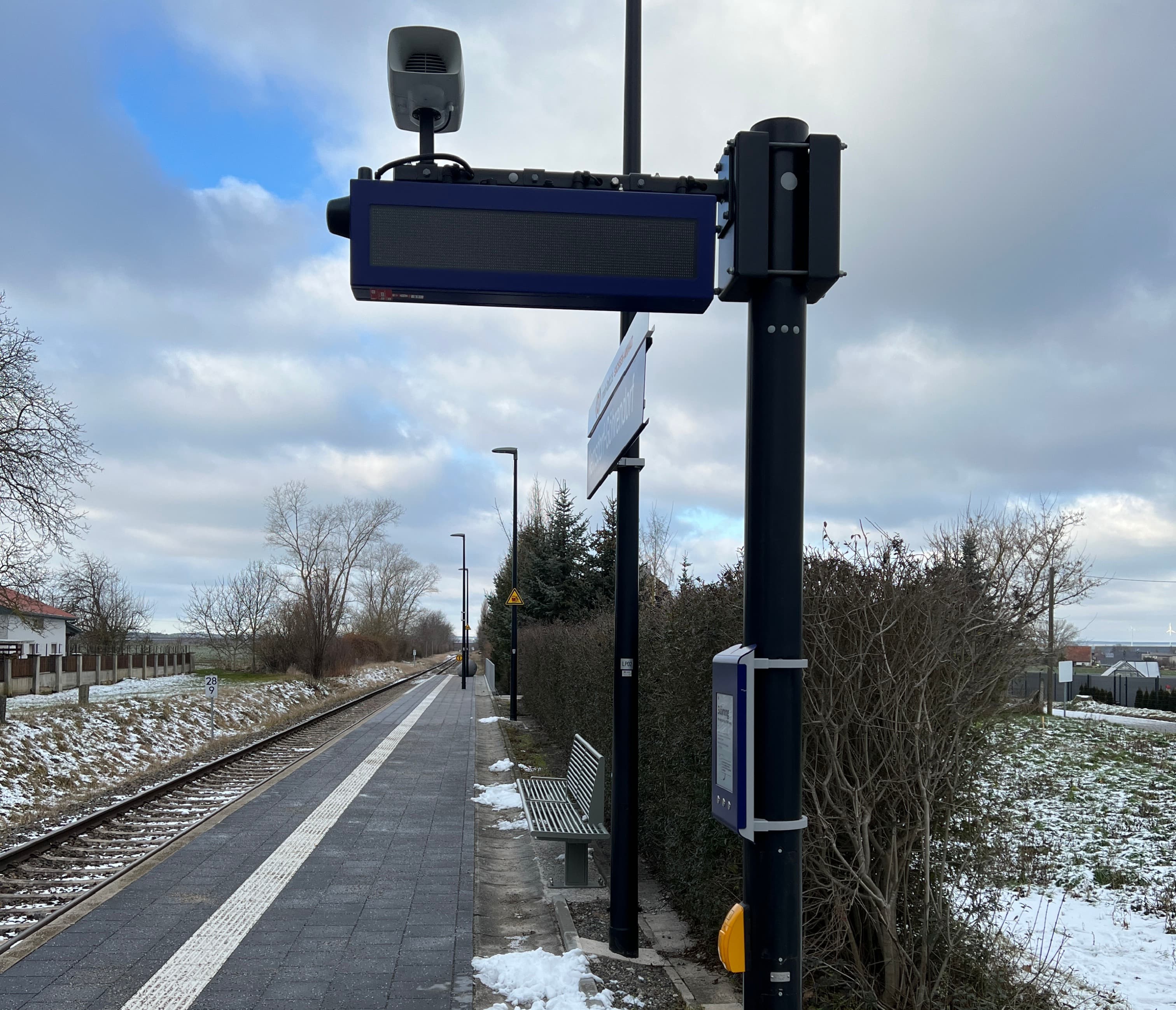 Link zu diesem Abschnitt kopierenAm Bahnsteig wurden weitere Modernisierungsmaßnahmen durchgeführt. So wurden neue Sitzbänke installiert und ein dynamischer Schriftanzeiger (DSA+) eingeführt. An diesem können sich Reisende und Besuchende über Änderungen im Fahrtverlauf informieren.