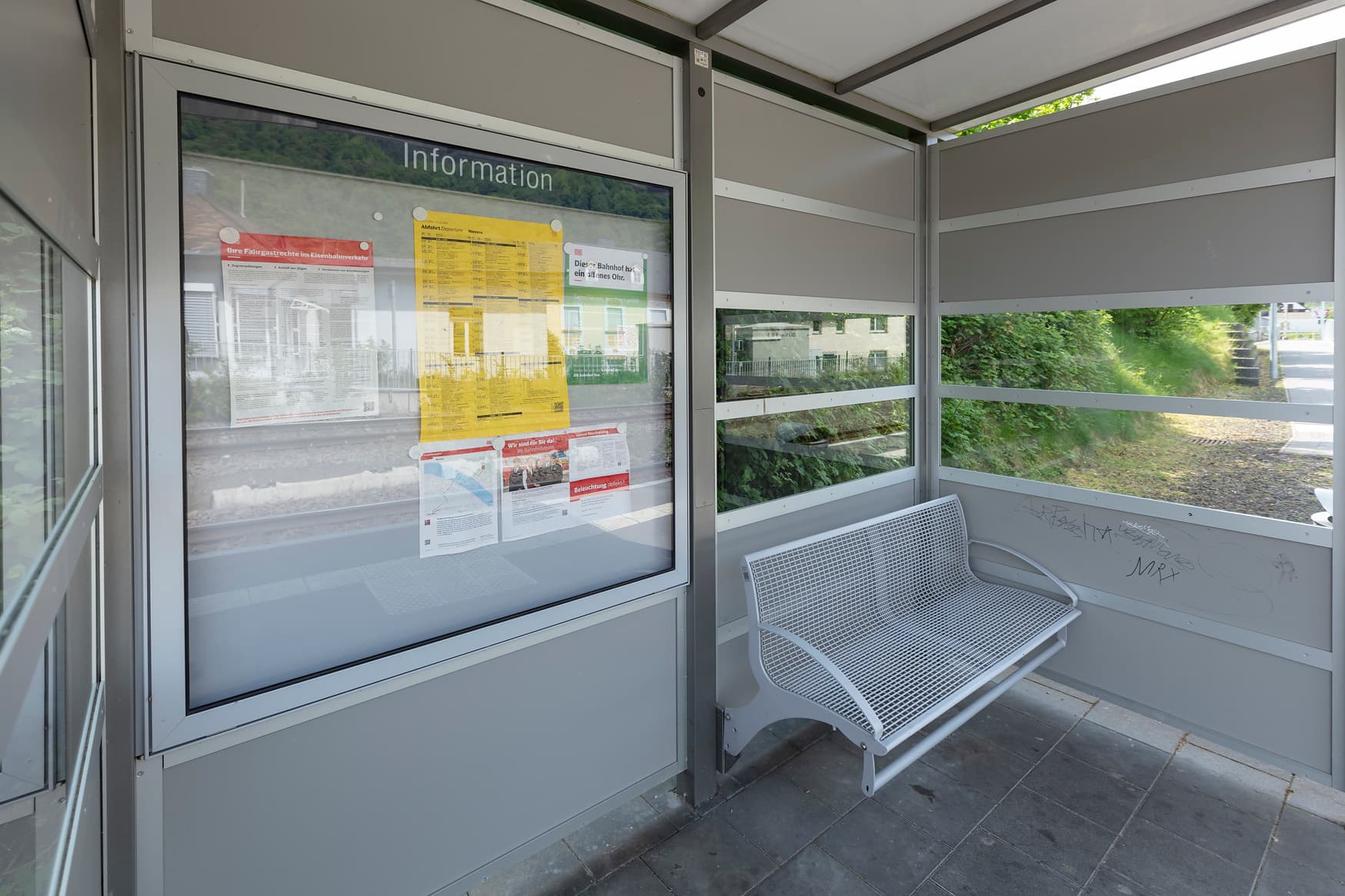 Link zu diesem Abschnitt kopierenDank dem neuen Zugmonitor mit Akustikmodul (DSA+) können die Reisenden die Zuginformationen besser hören und sehen. Zusätzlich wurde ein "Digitaler Aushang Baukommunikation" (DAB) angebracht sowie ein Ansagetaster installiert. Der DAB wird mit aktuellen Fahrplänen gespeist und informiert auch über Abweichungen, welche insbesondere durch Baustellen verursacht werden.