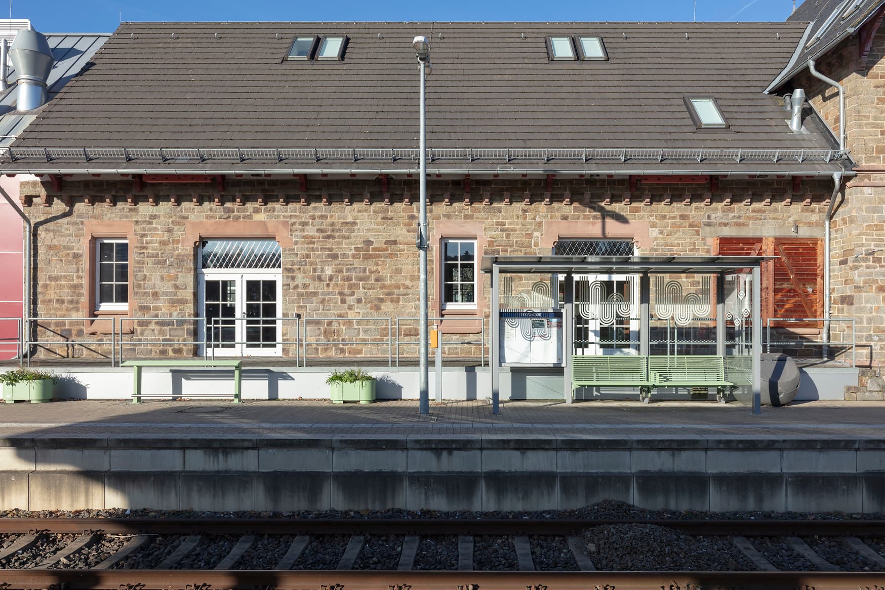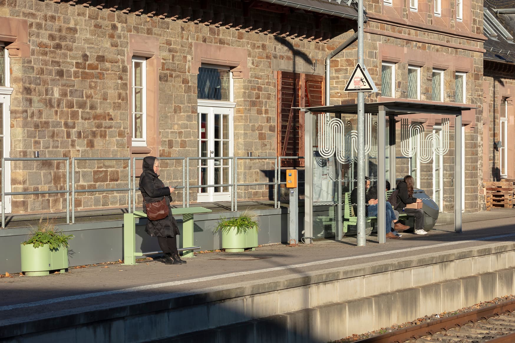 Link zu diesem Abschnitt kopierenSeit der Modernisierung gibt es auf den Bahnsteigen nun nicht nur mehr Sitzgelegenheiten und Wartemobiliar, sondern der Wechsel des Materials von Drahtgitter zu pulverbeschichtetem Rundstahl sorgt auch für eine wärmere, angenehmere Atmosphäre während des Aufenthaltes.