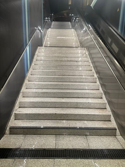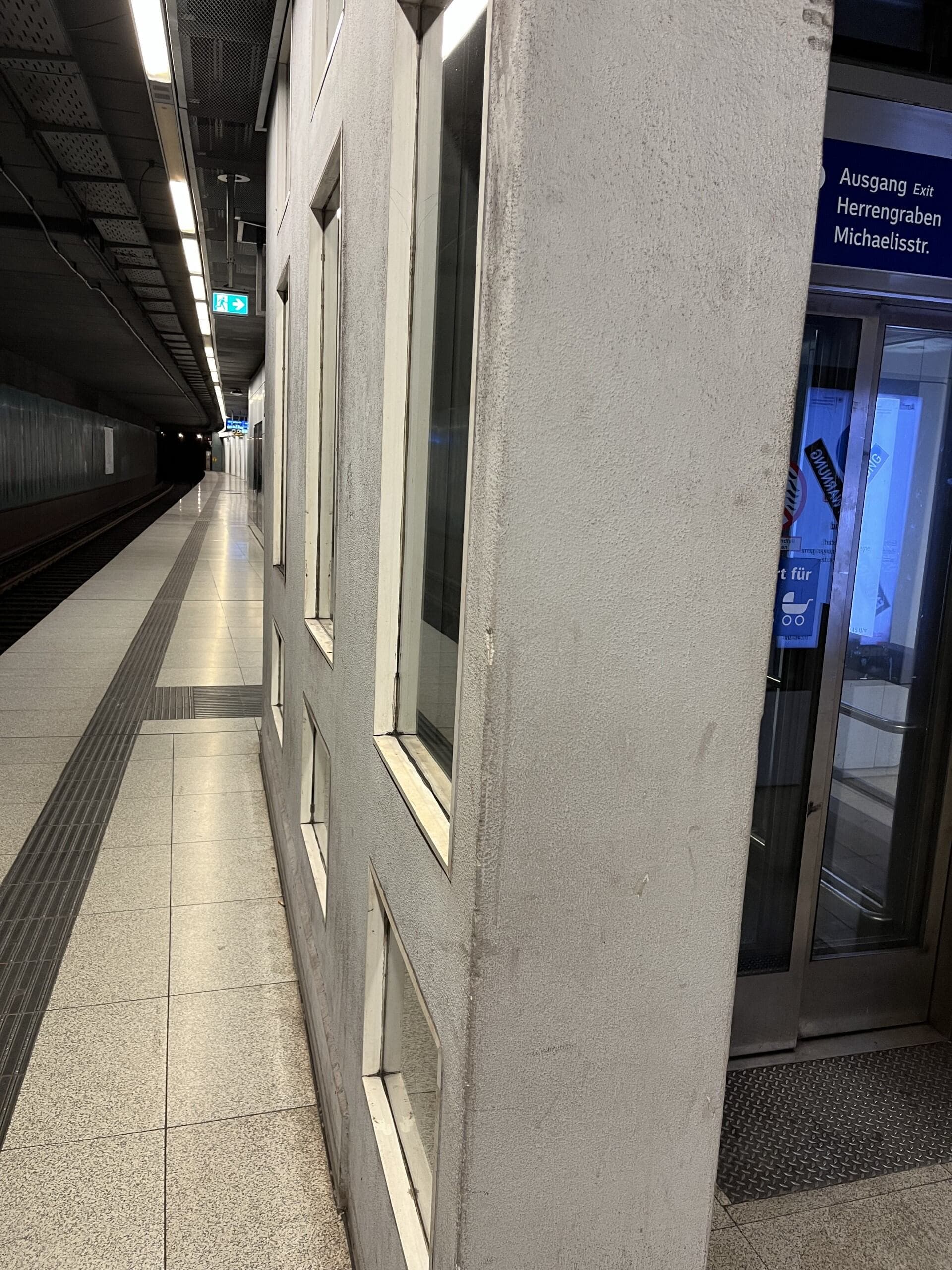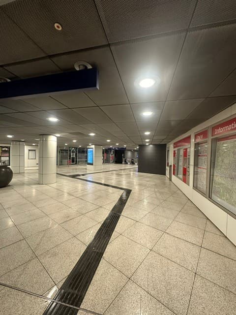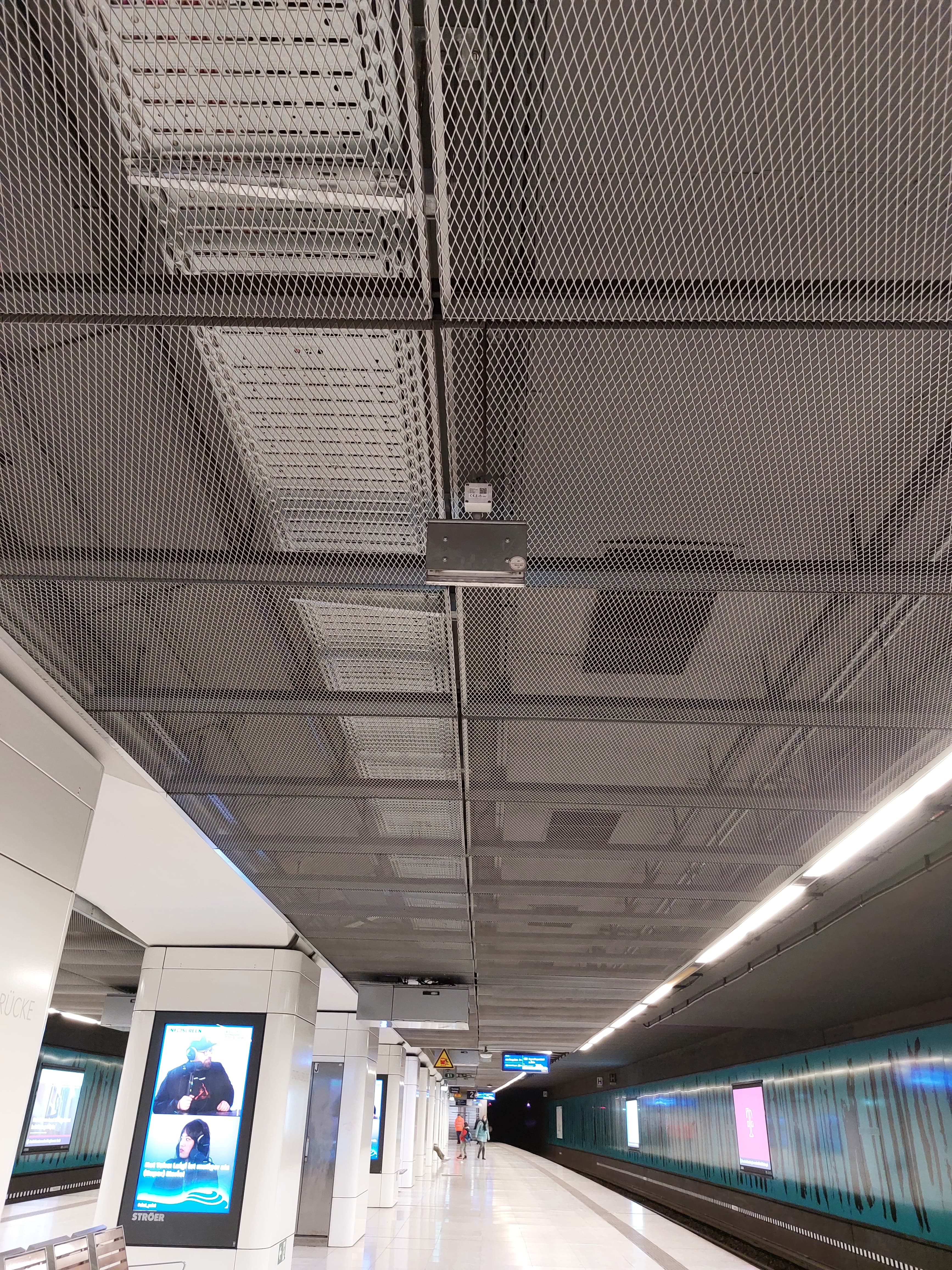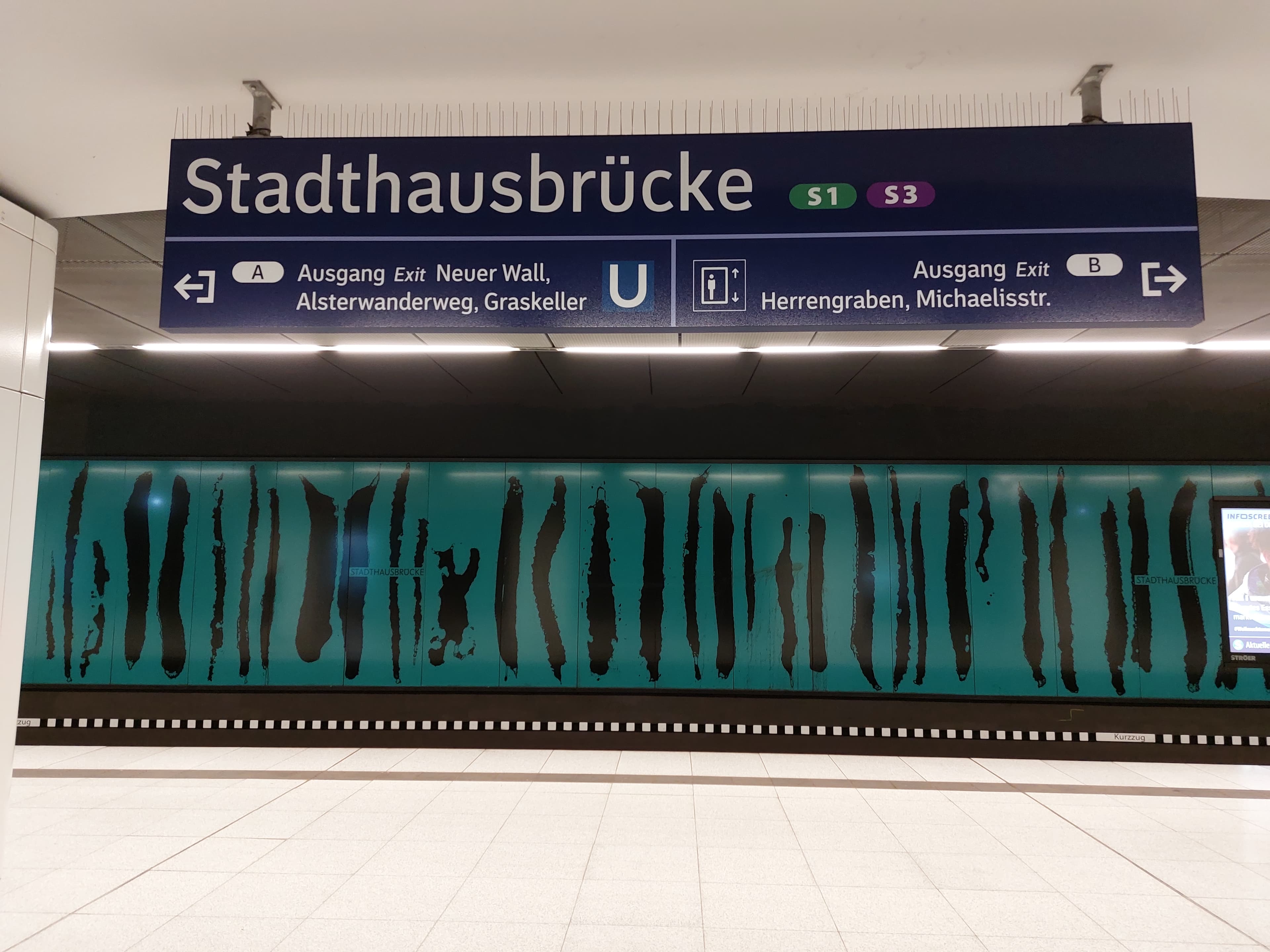 Link zu diesem Abschnitt kopierenDer S-Bahnhof Stadthausbrücke wurde in seiner gesamten Anmutung aufgefrischt. Mit verschiedenen Maßnahmen wie dem neuen Ausrichten der Deckenplatten, dem Entfernen von Graffiti, neuen Anstrichen und dem Austausch von beschädigten Bodenfliesen erstrahlt der Bahnhof in neuem Glanz.