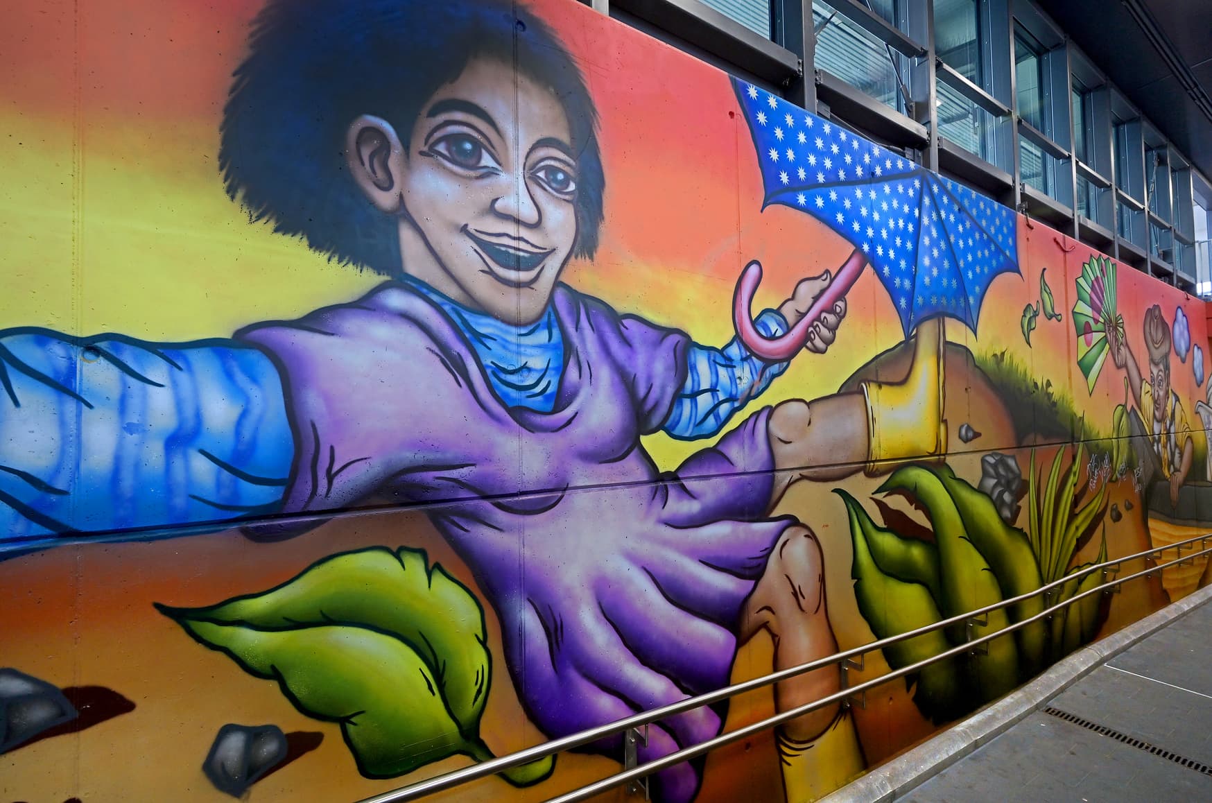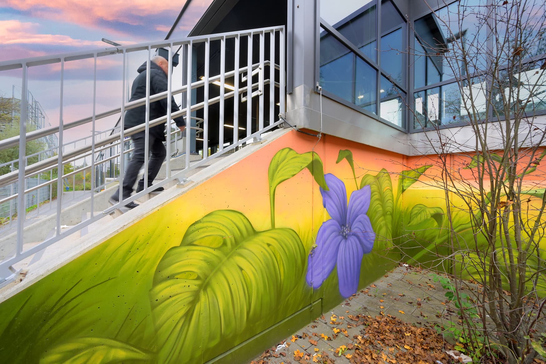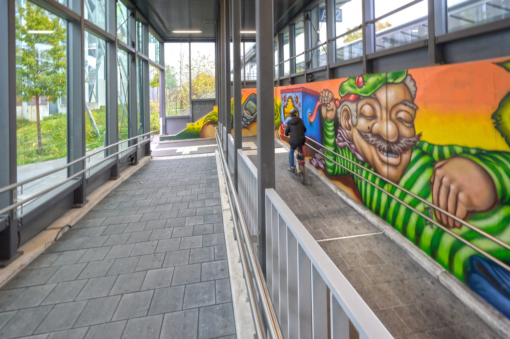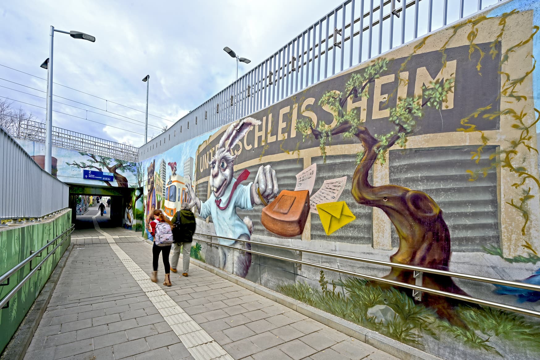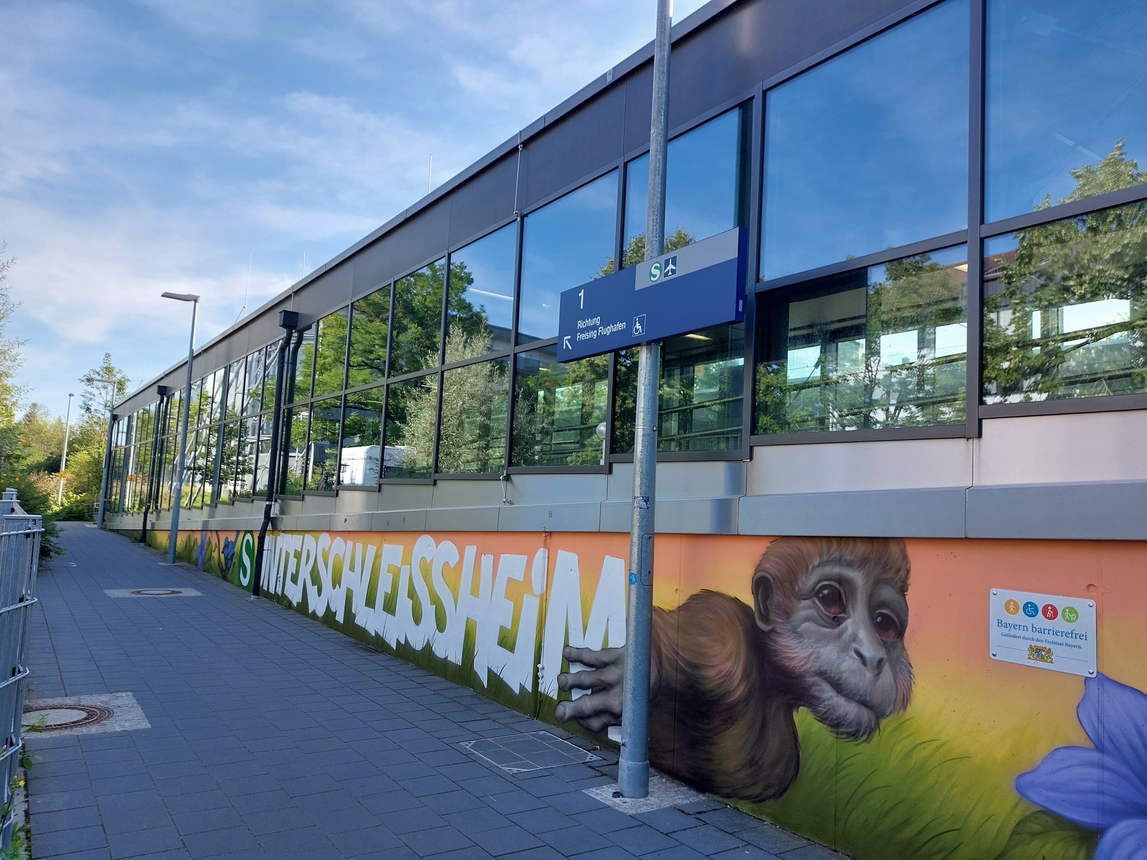 Link zu diesem Abschnitt kopierenDurch den Umbau und die Modernisierung wurde im Jahr 2018 der barrierefreie Zugang zu den Bahnsteigen ermöglicht. In Zusammenarbeit mit der Stadt Unterschleißheim wurde eine durchgängig barrierefreie Personenunterführung gebaut und auch barrierefrei an die Bahnsteige angeschlossen. Die Gestaltung der Rampen und Unterführung durch die lokalen Künstler Justus Körtgen und Viktor Höricht begrüßt die Reisenden und Besuchenden zusätzlich freundlich am Bahnhof. Durch neue Anzeiger für Reisendeninformation an den Bahnsteigen und Zugängen können sich Reisende und Besuchende über aktuelle Änderungen im Fahrtverlauf informieren.